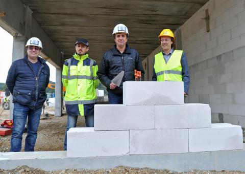 Mercredi 31 octobre, le responsable immobilier régional de Lidl, Michael Doumenc, accompagné de l’architecte pont-de-l’arnais Stéphane Fieu, a fait visiter le chantier du futur magasin au maire Bernard Escudier et à son adjoint Jérôme Pujol. Situé en bord de la RN 112 sur la commune d’Aussillon, le bâtiment devrait passer de 600 à 1200 m2. « Nous avons privilégié la qualité française pour cette construction, avec des matériaux et un agencement plus haut de gamme, pour coller aux souhaits de la clientèle locale. » Le 6 février 2019, le nouveau Lidl ouvrira ses portes au public. L’actuel sera fermé dès le 24 décembre et démoli dans la foulée. Le supermarché sera donc plus vaste et sera doté d’un parking plus grand, qui englobera la surface de l’ancien magasin. Durant la réunion, les élus aussillonnais se sont informés des relations avec le voisinage du supermarché, que l’entreprise a pris en compte. Enfin, symboliquement, le premier magistrat, Bernard Escudier, a posé la première pierre du futur Lidl, dont le nombre de salariés devrait croître de onze CDI aujourd’hui à une vingtaine.